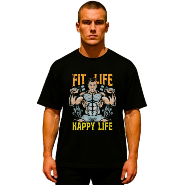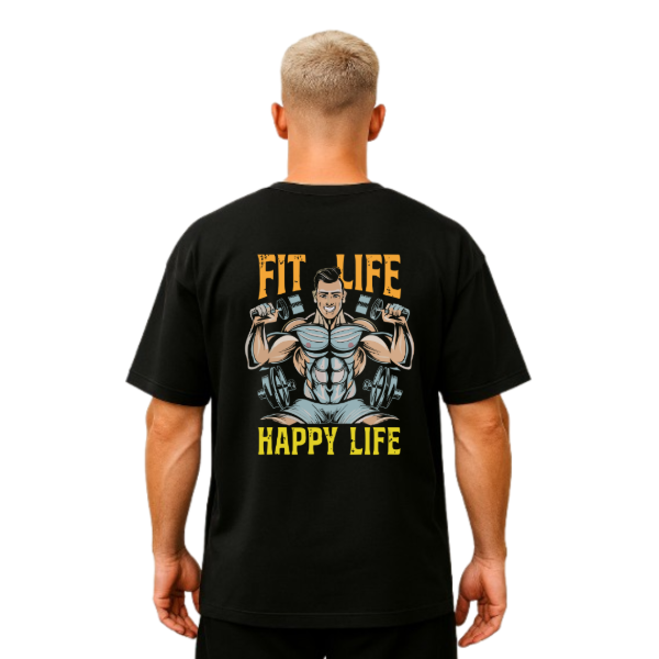 Remera Oversize Unisex Fit Life, Happy Life
